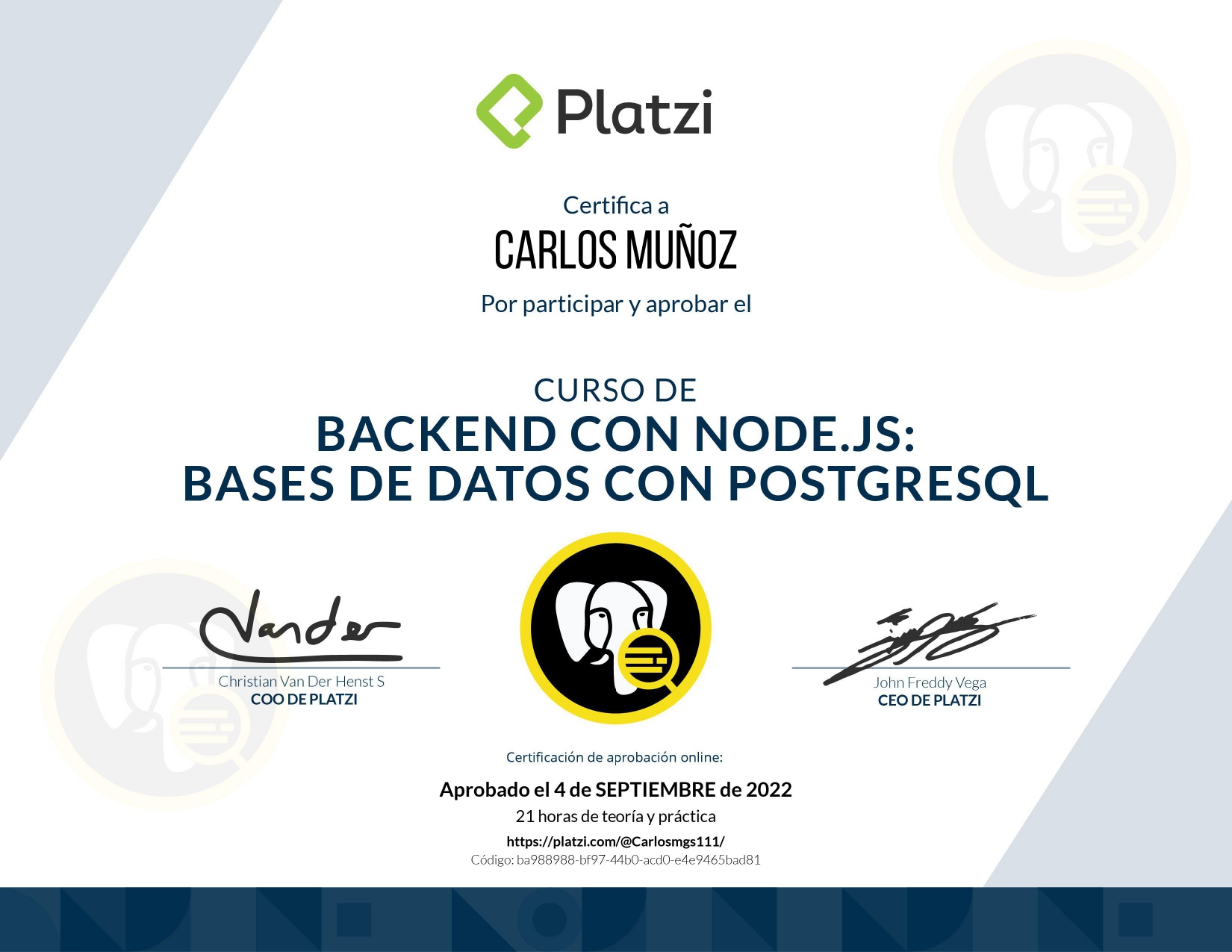 Certificado de finalización del curso Arquitecturas Limpias para Desarrollo de Software